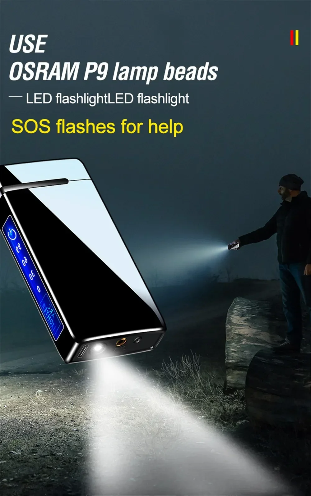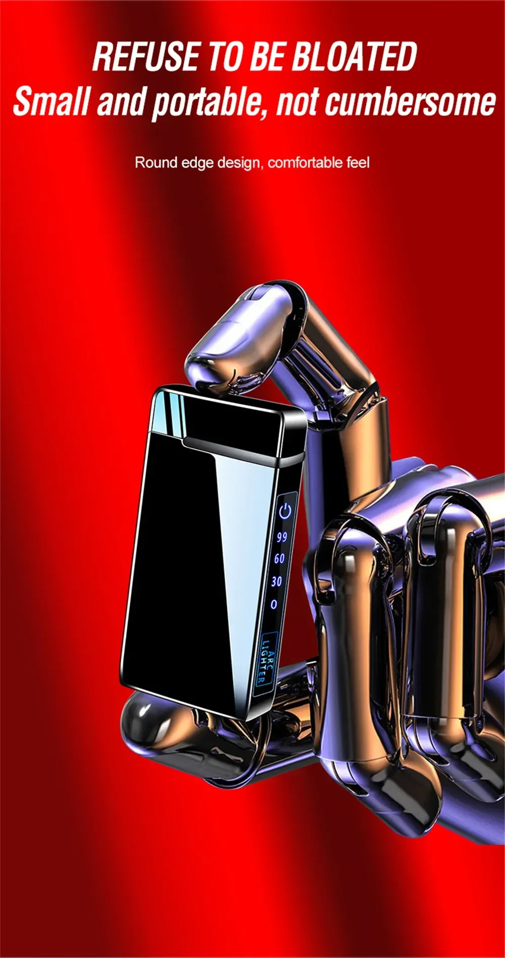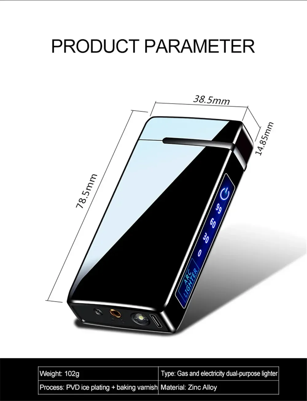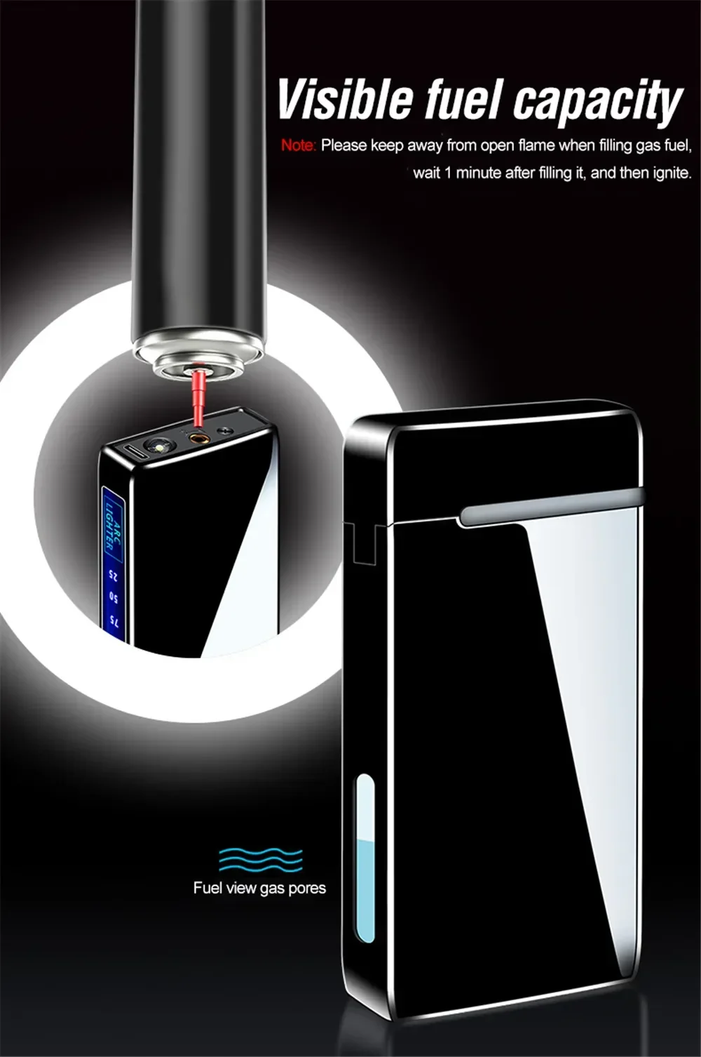 Power Display USB Charge Plasma Butane Gas Lighter with Flashlight 3In1 Jet Lighter Metal Windproof Flameless Electric Lighter